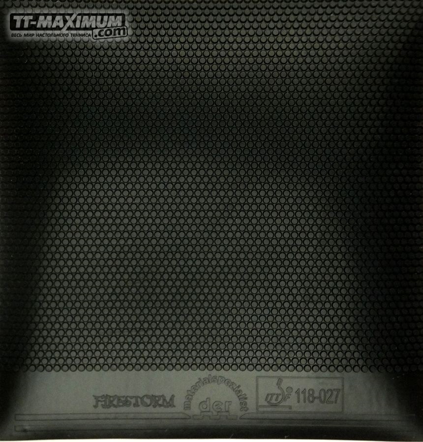 При выполнении топсов или сильно крученых подач Firestorm отдаёт в руку ощущением растяжения топшита. Когда мяч цепляется за топшит, растягивает его, а потом он обратно сжимается. Это ощущение характерно для гладких накладок, не для шипов. Кстати, подачи можно крутить очень сильно этим шипом. Это сильная сторона накладки.